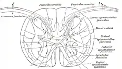 ![]() Diagram of the principal fasciculi of the spinal cord. (Spinotectal fasciculus labeled at bottom left.) | |