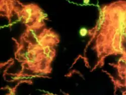 | A microscopic photograph of fluorescent-stained Spirochaeta americana | |