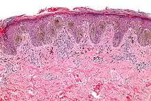 A Spitz nevus is a benign skin lesion. A type of melanocytic nevus, it affects the epidermis and dermis.[1]
