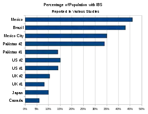 - Schmulson M, Ortíz O, Santiago-Lomeli M, Gutiérrez-Reyes G, Gutiérrez-Ruiz MC, Robles-Díaz G, Morgan D (2006). "Frequency of functional bowel disorders among healthy volunteers in Mexico City". Digestive Diseases. 24 (3–4): 342–7. doi:10.1159/000092887. PMID 16849861. S2CID 3275233.