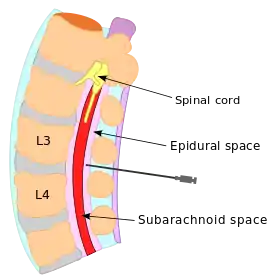 Diagnosis of a cerebrospinal fluid leak is performed through a combination of measurement of the CSF pressure and a computed tomography myelogram (CTM) scan of the spinal column for fluid leaks.[10] The opening fluid pressure in the spinal canal is obtained by performing a lumbar puncture, also known as a spinal tap. Once the pressure is measured, a radiocontrast agent is injected into the spinal fluid. The contrast then diffuses out through the dura sac before leaking through dural holes. This allows for a CTM with fluoroscopy to locate and image any sites of dura rupture via contrast seen outside the dura sac in the imagery.[9][18][19]