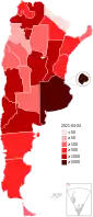 | Tierra del Fuego[lower-alpha 2] | 23,771 | 377 | No data[lower-alpha 7] | 18,687 | [36] | |