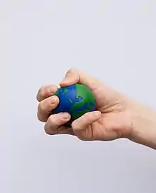 A stress ball or hand exercise ball is a malleable toy, usually not more than 7 cm in diameter, which is squeezed in the hand and manipulated by the fingers, ostensibly to relieve stress and muscle tension or to exercise the muscles of the hand.