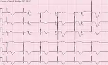 The main risk factor for stroke is high blood pressure.[6] Other risk factors include tobacco smoking, obesity, high blood cholesterol, diabetes mellitus, a previous TIA, end-stage kidney disease, and atrial fibrillation.[2][6][7] An ischemic stroke is typically caused by blockage of a blood vessel, though there are also less common causes.[12][13][14] A hemorrhagic stroke is caused by either bleeding directly into the brain or into the space between the brain's membranes.[12][15] Bleeding may occur due to a ruptured brain aneurysm.[12] Diagnosis is typically based on a physical exam and supported by medical imaging such as a CT scan or MRI scan.[8] A CT scan can rule out bleeding, but may not necessarily rule out ischemia, which early on typically does not show up on a CT scan.[9] Other tests such as an electrocardiogram (ECG) and blood tests are done to determine risk factors and rule out other possible causes.[8] Low blood sugar may cause similar symptoms.[8]