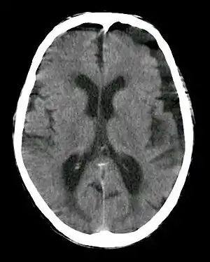 A subdural hygroma (SDG) is a collection of cerebrospinal fluid (CSF), without blood, located under the dural membrane of the brain. Most subdural hygromas are believed to be derived from chronic subdural hematomas. They are commonly seen in elderly people after minor trauma but can also be seen in children following infection or trauma. One of the common causes of subdural hygroma is a sudden decrease in pressure as a result of placing a ventricular shunt. This can lead to leakage of CSF into the subdural space especially in cases with moderate to severe brain atrophy. In these cases the symptoms such as mild fever, headache, drowsiness and confusion can be seen, which are relieved by draining this subdural fluid.