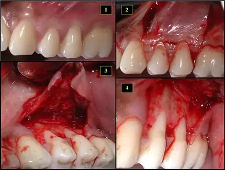 In dentistry, the subepithelial connective tissue graft (SECT graft, and sometimes referred to simply as a connective tissue (CT) graft) is an oral and maxillofacial surgical procedure first described by Alan Edel in 1974.[1] Currently, it is generally used to obtain root coverage following gingival recession, which was a later development by Burt Langer in the early 1980s.[2]