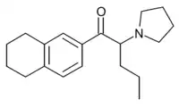 ![]() | α-Naphyrone | α-naphthyl instead of phenyl | nPr | pyrrolidinyl | ||