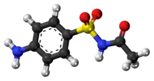 Sulfacetamide is a sulfonamide antibiotic, that is used as a cream to treat skin infections and as eye drops to treat eye infections. On the skin it is used to treat acne and seborrheic dermatitis.[20] In cream form it is used to treat bacterial infections on the skin. It can also be used orally to treat urinary tract infections.[9] It kills the bacteria by restricting the production of folic acid, which is essential for bacterial growth.[25] It mainly inhibits the multiplication of bacteria as it acts in a competitive inhibitor.