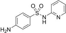 Sulfapyridine (INN; also known as sulphapyridine) is a sulfanilamide antibacterial medication. At one time, it was commonly referred to as M&B 693. Sulfapyridine is no longer prescribed for treatment of infections in humans. However, it may be used to treat linear IgA disease and has use in veterinary medicine.[1] It is a good antibacterial drug, but its water solubility is very pH dependent. Thus there is a risk of crystallization within the bladder or urethra, which could lead to pain or blockage. As with other sulfonamides, there is a significant risk of agranulocytosis, and this, rather than the development of resistance by bacteria, is the main reason for its decline in use.