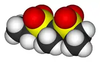 Sulfonmethane (Sulfonomethane, Sulfonal, Acetone diethyl sulfone) is a chemical compound first synthesized by Eugen Baumann in 1888 and introduced as a hypnotic drug by Alfred Kast later on, but now superseded by newer and safer sedatives.[1] Its appearance is either in colorless crystalline or powdered form. In United States, it is scheduled as a Schedule III drug in the Controlled Substance Act.[2]