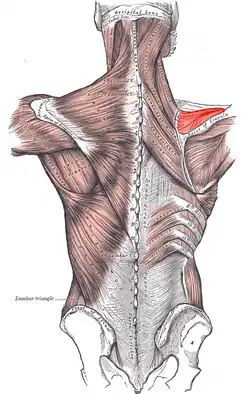 ![]() Position of the supraspinatus muscle (red) seen from the back. | |