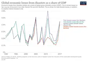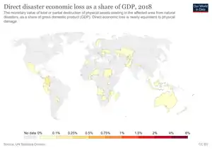 - Indicator 11.5.2: Direct economic loss in relation to global GDP, damage to critical infrastructure and the number of disruptions to basic services, attributed to disasters."