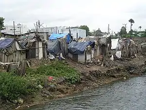People who live in slums have no access to improved water, access to improved sanitation, sufficient living area, and durable housing.[9]
