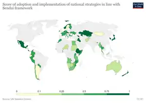 - "Score of adoption and implementation of national strategies in line with Sendai framework". Our World in Data. Retrieved 2020-10-12.