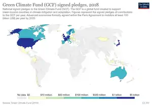 - Green Climate Fund (GCF), established in 2010 by the United Nations Framework Convention on Climate Change (UNFCCC): the GCF is the largest dedicated fund dedicated to help developing countries reduce their greenhouse gas emissions and enhance their ability to respond to climate change.[53]