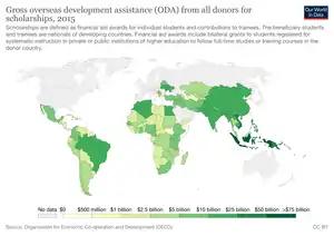 ODA for scholarships amounted to $1.6 billion in 2018, up from $1.3 billion in 2017.[9]