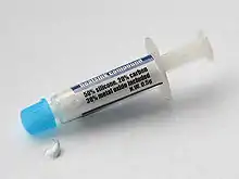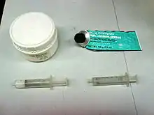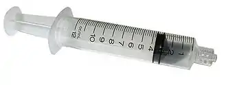 A dental syringe is a used by dentists for the injection of an anesthetic.[24] It consists of a breech-loading syringe fitted with a sealed cartridge containing anesthetic solution.