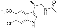 - Mulchahey JJ, Goldwater DR, Zemlan FP (August 2004). "A single blind, placebo controlled, across groups dose escalation study of the safety, tolerability, pharmacokinetics and pharmacodynamics of the melatonin analog beta-methyl-6-chloromelatonin". Life Sciences. 75 (15): 1843–56. doi:10.1016/j.lfs.2004.03.023. PMID 15302228.