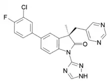 TROX-1 is a drug which acts as a potent blocker of the Cav2 type calcium channels. It was developed as a potential analgesic after the discovery that the selective Cav2.2 blocker ziconotide is an active analgesic with similar efficacy to strong opioid drugs. Unlike ziconotide, TROX-1 is not so selective, and also blocks the Cav2.1 and Cav2.3 calcium channel subtypes, but it has the great advantage of being orally active, whereas ziconotide must be administered intrathecally, by injection into the spinal fluid. In animal studies of TROX-1, analgesic effects were observed with similar efficacy to NSAIDs such as naproxen or diclofenac, and anti-allodynia effects equivalent to pregabalin or duloxetine.[1][2][3]