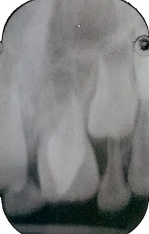 Although talon cusp may not appear serious, and in some people may be completely benign, it can cause clinical, diagnostic and functional problems, and alters the appearance of a person's teeth. The condition was first described by W.H. Mitchell in 1982 and named by J. Kimball Mellor B.S., D.D.S. and Louis W. Ripa, D.D.S., M.S.[3] due to its similar appearance to an eagle's talon. Some sources define a talon cusp as an extra cusp which extends at least half the distance between the cementoenamel junction and the incisal edge of the tooth.[4] Other sources classify all enlarged cingula as talon cusps, and classify them according to the degree of enlargement.[4]