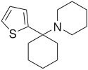 Tenocyclidine (TCP) was discovered by a team at Parke-Davis in the late 1950s.[1] It is a dissociative anesthetic drug with psychostimulant and hallucinogenic effects. It is similar in effects to phencyclidine (PCP) but is considerably more potent. TCP has slightly different binding properties to PCP, with more affinity for the NMDA receptors,[2] but less affinity for the sigma receptors.[3] Because of its high affinity for the PCP site of the NMDA receptor complex, the 3H radiolabelled form of TCP is widely used in research into NMDA receptors.