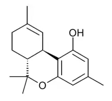 Δ9-Tetrahydrocannabiorcol (Δ9-THCC, (C1)-Δ9-THC) is a phytocannabinoid found in Cannabis.[1] It is a homologue of THC and THCV with the alkyl side chain replaced by a smaller methyl group. Unlike THC and THCV, THCC has negligible affinity for the CB1 and CB2 cannabinoid receptors, but conversely it is significantly more potent than THC or THCV as an activator of the TRPA1 calcium channel which plays an important role in pain perception,[2] and it has been shown to produce analgesic effects via activation of spinal TRPA1 channels.[3][4]