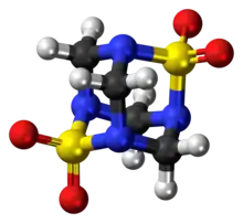 Tetramethylenedisulfotetramine (TETS) is an organic compound that is used as a rodenticide (rat poison).[2] It is an odorless, tasteless white powder that is slightly soluble in water, DMSO and acetone, and insoluble in methanol and ethanol. TETS is a sulfamide derivative. It can be synthesized by reacting sulfamide with formaldehyde under acidic condition.[3] When crystallized from acetone, it forms cubic crystals with a melting point of 255–260 °C.