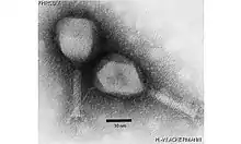 | Electron micrograph of two virions of genus Tequatrovirus | |