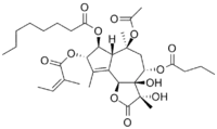 (3S,3aR,4S,6S,6aR,7S,8S,9bS)-6-(Acetyloxy)-4-(butyryloxy)-3,3a-dihydroxy-3,6,9-trimethyl-8-{[(2Z)-2-methylbut-2-enoyl]oxy}-2-oxo-2,3,3a,4,5,6,6a,7,8,9b-decahydroazuleno[4,5-b]furan-7-yl octanoate | |