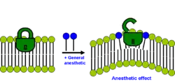 It was initially hypothesized that general anaesthetic binds to its target ion channel by a key-lock mechanism and changes its structure dramatically from open to closed conformation or vice versa. However, there is a significant amount of evidence against direct key-lock interaction of membrane proteins with general anaesthetics[43][44][45][46]