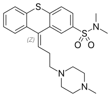 Tiotixene, or thiothixene, sold under the brand name Navane among others, is a typical antipsychotic of the thioxanthene class which is related to chlorprothixene and is used in the treatment of psychoses like schizophrenia and bipolar mania. It was introduced in the United States in 1967[1] by Pfizer.[2]