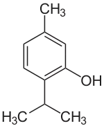 2-Isopropyl-5-methylphenol, isopropyl-m-cresol, 1-methyl-3-hydroxy-4-isopropylbenzene, 3-methyl-6-isopropylphenol, 5-methyl-2-(1-methylethyl)phenol, 5-methyl-2-isopropyl-1-phenol, 5-methyl-2-isopropylphenol, 6-isopropyl-3-methylphenol, 6-isopropyl-m-cresol, Apiguard, NSC 11215, NSC 47821, NSC 49142, thyme camphor, m-thymol, and p-cymen-3-ol | |