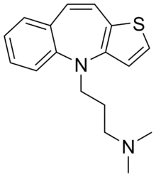 Tienopramine is a tricyclic antidepressant (TCA) which was never marketed.[1] It is an analogue of imipramine where one of the benzene rings has been replaced with a thiophene ring.