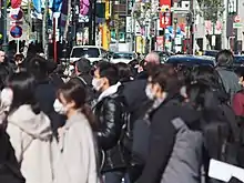 On 26 March, several governors of the Greater Tokyo Area, including Chiba, Kanagawa, Saitama, and Yamanashi, strongly urged residents to follow stay-at-home requests to prevent a surge in infections that could cause a "critical phase".[83] In Tokyo, residents were asked to work from home and refrain from going out at night and on the weekend.[84]
