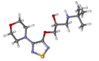 In its eye drop form it is used to treat open-angle and, occasionally, secondary glaucoma.[3][11] The mechanism of action of timolol is probably the reduction of the formation of aqueous humor[3] in the ciliary body in the eye. It was the first beta blocker approved for topical use in treatment of glaucoma in the United States (1978).[12] When used by itself, it depresses intraocular pressure (IOP) 18–34% below baseline within first few treatments. However, there are short-term escape and long-term drift effects in some people. That is, tolerance develops. It may reduce the extent of the diurnal IOP curve up to 50%. The IOP is higher during sleep. Efficacy of timolol in lowering IOP during the sleep period may be limited.[13][14][15] It is a 5–10× more potent β-blocker than propranolol. Timolol is light-sensitive; it is usually preserved with 0.01% benzalkonium chloride (BAC), but also comes BAC-free. It can also be used in combination with pilocarpine, carbonic anhydrase inhibitors[16] or prostaglandin analogs.[17]