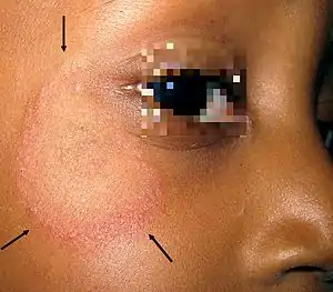 Tinea faciei is a fungal infection of the face.[1]:301[2] It generally appears as a red rash on the face, followed by patches of small, raised bumps. The skin may peel while it is being treated.