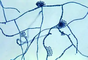 | Micrograph of the fungus Hortaea werneckii, the causative agent of tinea nigra | |