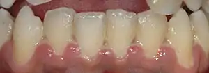 Dentin hypersensitivity is a sharp, short-lasting dental pain occurring in about 15% of the population,[16] which is triggered by cold (such as liquids or air), sweet or spicy foods, and beverages.[17] Teeth will normally have some sensation to these triggers,[18] but what separates hypersensitivity from regular tooth sensation is the intensity of the pain. Hypersensitivity is most commonly caused by a lack of insulation from the triggers in the mouth due to gingival recession (receding gums) exposing the roots of the teeth, although it can occur after scaling and root planing or dental bleaching, or as a result of erosion.[19] The pulp of the tooth remains normal and healthy in dentin hypersensitivity.[10]:510