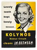 59. Segrave K (January 27, 2010). America Brushes Up: The Use and Marketing of Toothpaste and Toothbrushes in the Twentieth Century. McFarland. p. 35. ISBN 978-0-7864-5684-0.