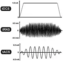 Variants related to tDCS include tACS, tPCS and transcranial random noise stimulation (tRNS), a group of technologies commonly referred to as transcranial electrical stimulation, or TES.[37]