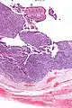 | Micrograph of transitional cell carcinoma of the ovary. H&E stain. |