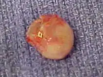 | Trichilemmal cyst. Note the thick durable white shell. | |