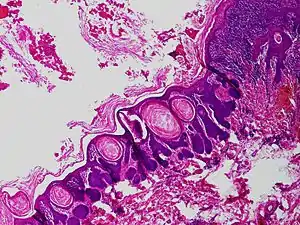 Trichofolliculoma is a cutaneous condition characterized by a benign, highly structured tumor of the pilosebaceous unit.[1]:671[2]