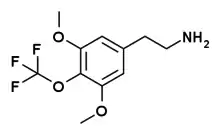 Trifluoromescaline (TF-M) is a derivative of the phenethylamine hallucinogen mescaline, which has a trifluoromethoxy group replacing the central methoxy group of mescaline. Synthesis of this compound was first reported by Daniel Trachsel in 2011, alongside many other related compounds.[1][2] Trifluoromescaline was found to be one of the most potent compounds in the series, with a reported dosage of 15-40mg (and 60mg being described as a "strong overdose"), and a slow onset of action and long duration of effects, lasting 14-24 hours or more.[3]