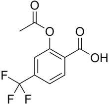 Triflusal is a platelet aggregation inhibitor that was discovered and developed in the Uriach Laboratories, and commercialised in Spain since 1981. Currently, it is available in 25 countries in Europe, Asia, Africa and America. It is a drug of the salicylate family but it is not a derivative of acetylsalicylic acid (ASA), but rather a trifluoromethylated analogue. Trade names include Disgren, Grendis, Aflen and Triflux.[1]