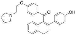 Trioxifene (INN) (developmental code name LY-133,314), or as the salt trioxifene mesylate (USAN), is a selective estrogen receptor modulator (SERM) with competitive binding activity against estradiol for the ERα and antagonistic activity against ERα-mediated gene expression, that was under preclinical and clinical development by Eli Lilly and Company for breast cancer and prostate cancer,[1] but was abandoned.[2]:11[3][4] Its affinity for the rat estrogen receptor was reported to be 20% relative to estradiol.[5][6]