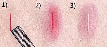 The triple response of Lewis is particularly sensitive in people with dermatographia urticaria.[4][5] Some form of dermatographia is present in around 5% of the population.[4]