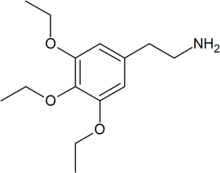 Trisescaline (3,4,5-triethoxyphenethylamine) is a lesser-known phenethylamine prepared as a possible psychedelic drug. It is an analog of mescaline. Trisescaline was first synthesized by Alexander Shulgin. In his book PiHKAL, both the minimum dosage and the duration are unknown.[1] Trisescaline produces no effects. Very little data exists about the pharmacological properties, metabolism, and toxicity of trisescaline.