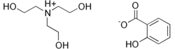It is used as an ingredient in sunscreens, analgesic creams, and cosmetics. The salicylic acid portion contributes to both the sun protection effect (by absorbing UVB radiation) and to the analgesic effect. The triethanolamine neutralizes the acidity of the salicylic acid. One benefit of this topical analgesic is that it has no odor, in contrast to other topical analgesics such as menthol.