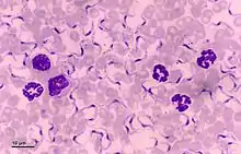 Τrypanosoma equiperdum is a species of kinetoplastid parasites that causes Dourine or covering sickness in horses and other animals in the family equidae. T. equiperdum is the only trypanosome that is not spread by an insect vector.[1] There has been substantial controversy surrounding whether T. equiperdum should be considered a unique species, or a strain of T. evansi or T. brucei.[1][2] T. equiperdum is unique in that its kinetoplast, the network of connected rings that make up its mitochondrial DNA, consists of thousands of "minicircles" that are identical in sequence. [3]